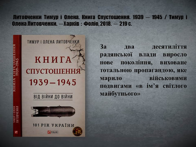 Друга світова війна… Страшна війна ХХ століття, пекуча рана, яка болить досі чи не в кожній родині в Україні. Воїни-переможці проявили чудеса героїзму, стійкості, мужності, билися за кожний клаптик рідної землі до останньої краплі крові, вистояли і перемогли. Для України ціна тієї перемоги жахлива – мільйони людських життів, зруйнована економіка. Кожен другий воїн поліг у боях, кожен другий з тих, хто залишився у живих, був поранений. Гоїлися рани, зростали повоєнні покоління… У Нововолинській центральній міській бібліотеці на Дружби, 17 влаштовно тематичну полицю «Війна і перемога: біль і пам'ять».